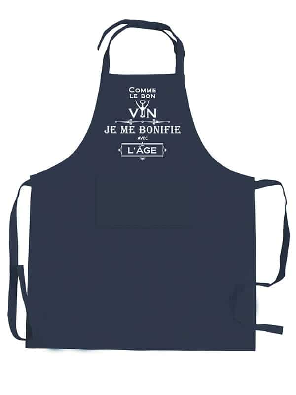 TABLIER INDIGO « JE ME BONIFIE AVEC L’ÂGE » – 72×90 cm (recyclé)
