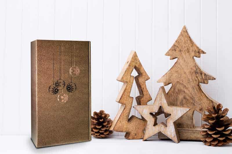 Coffret couché DORÉ TEXTURÉ COURO pour 2 bouteilles