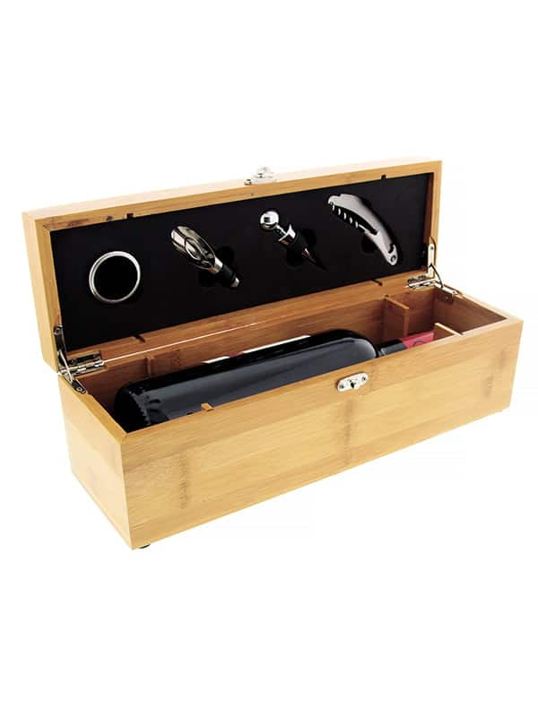 COFFRET CADEAU POUR 1 BOUTEILLE – AVEC 4 ACCESSOIRES