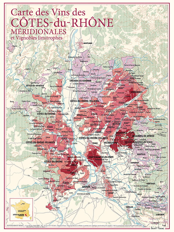 CARTE CÔTES-DU-RHÔNE MERIDIONALES 30×40 cm