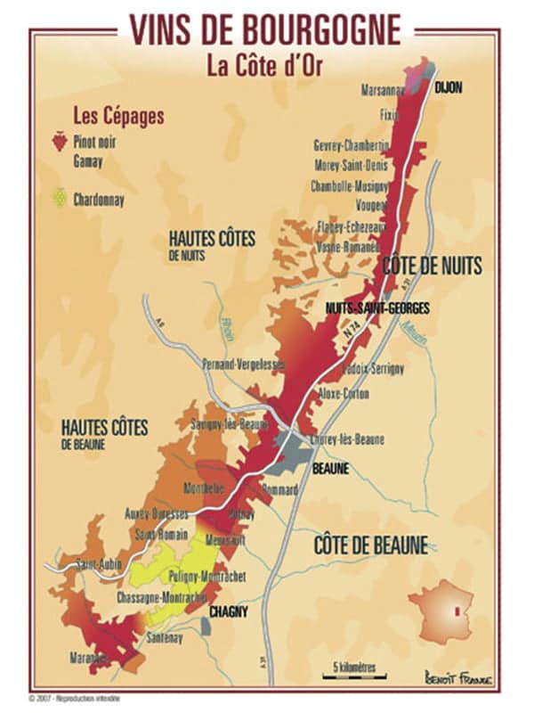 Carte postale des vignobles de La Côte d’Or