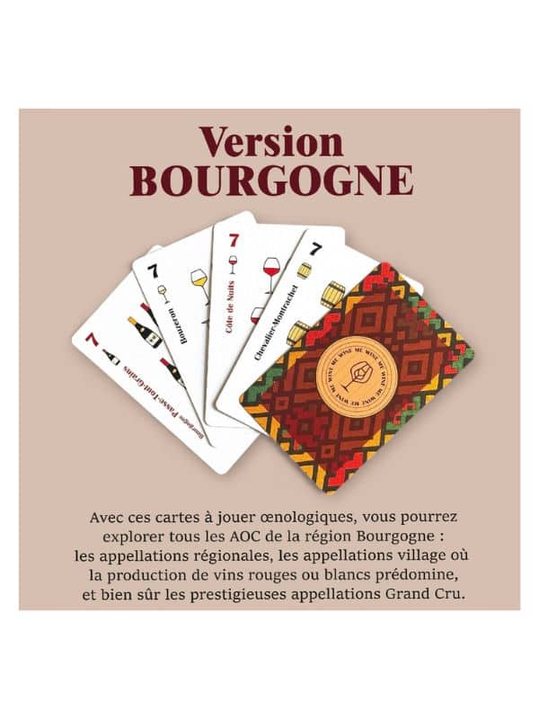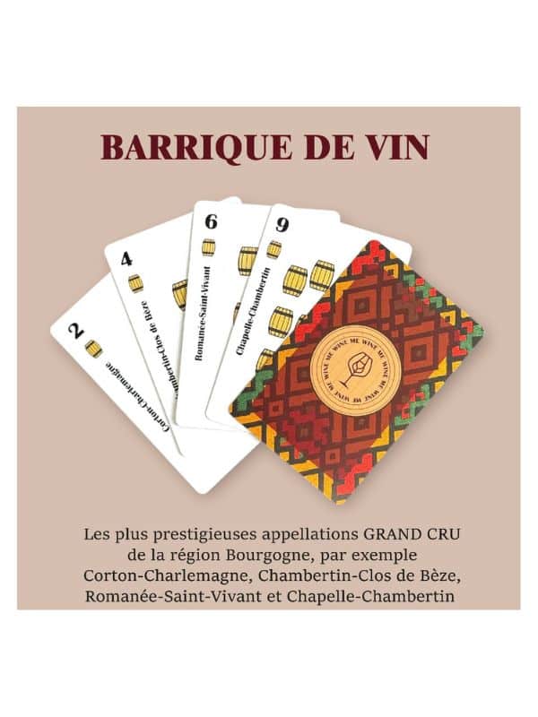 Conçu comme un jeu classique de 54 cartes, il reprend les mêmes règles tout en célébrant l’une des régions viticoles les plus prestigieuses du monde : La Bourgogne