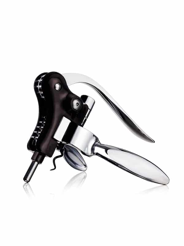 TIRE-BOUCHON À LEVIER HORIZONTAL NOIR ET ARGENT BRILLANT