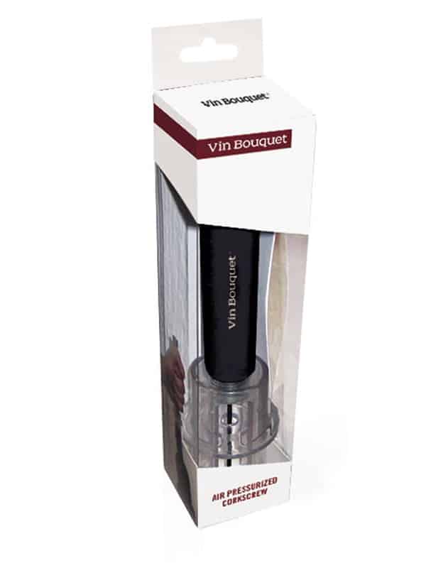 Fonctionnant sur le principe de pression pneumatique et de l’air comprimé, ce tire-bouchon vous permettra d’ouvrir vos meilleures bouteilles en toute sûreté. Pour retirer le bouchon, il suffit d’y insérer l’aiguille et de pomper deux à trois fois. Une pression sera créée à l’intérieur de la bouteille et le bouchon en sera inévitablement délogé. Le bouchon sera lui en parfait état (le trou de l’aiguille étant peu visible)