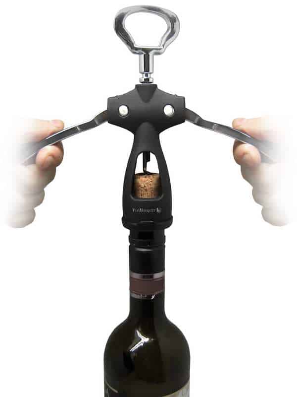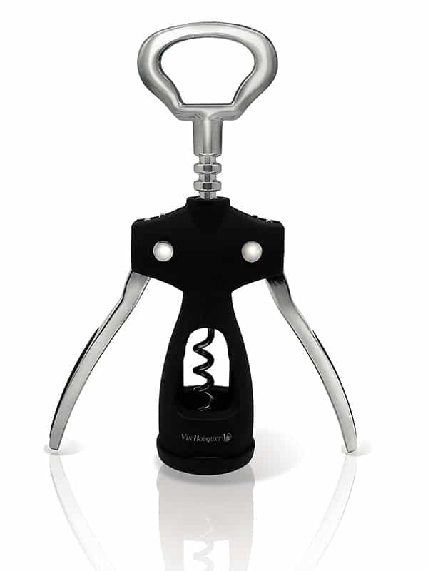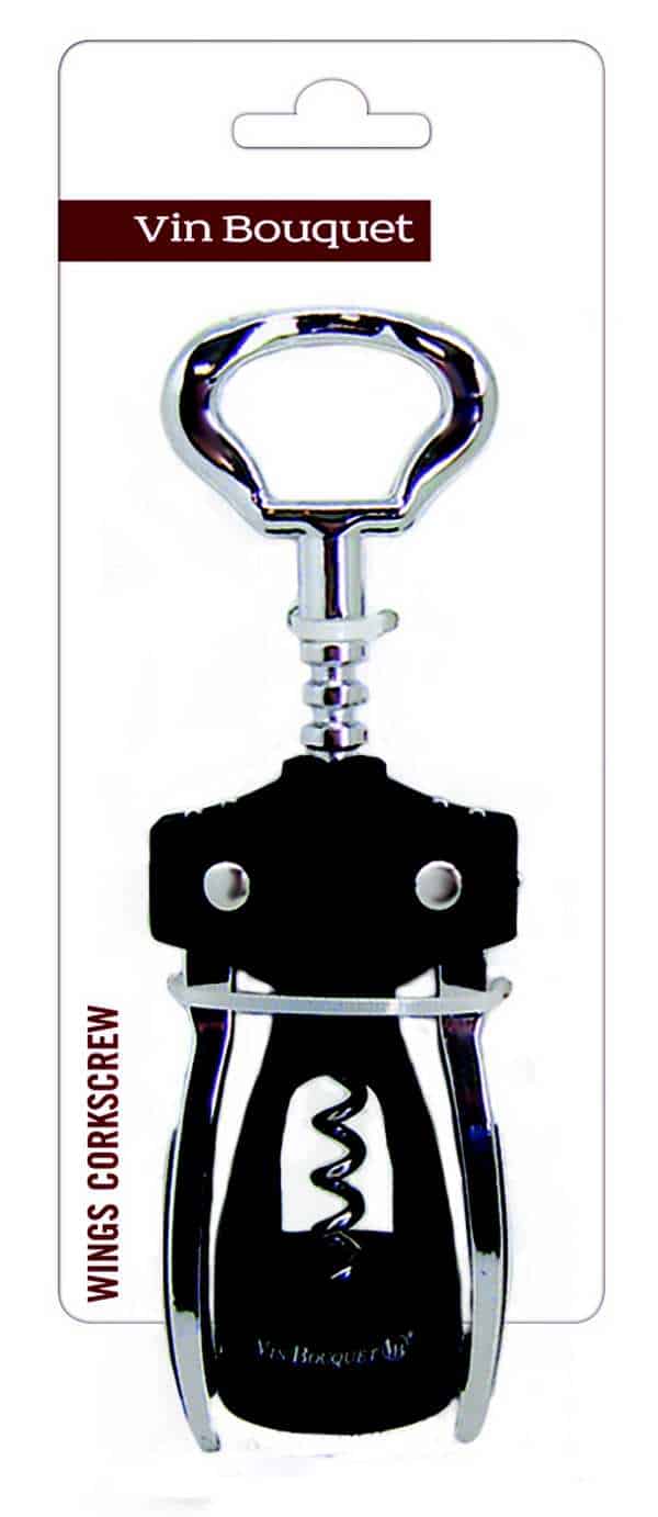 TIRE-BOUCHON À AILES INOX ET NOIR AVEC DÉCAPSULEUR