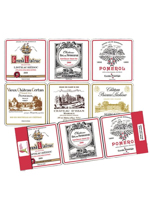 Lot de 6 sous-verres panachés décor Étiquettes de Bordeaux