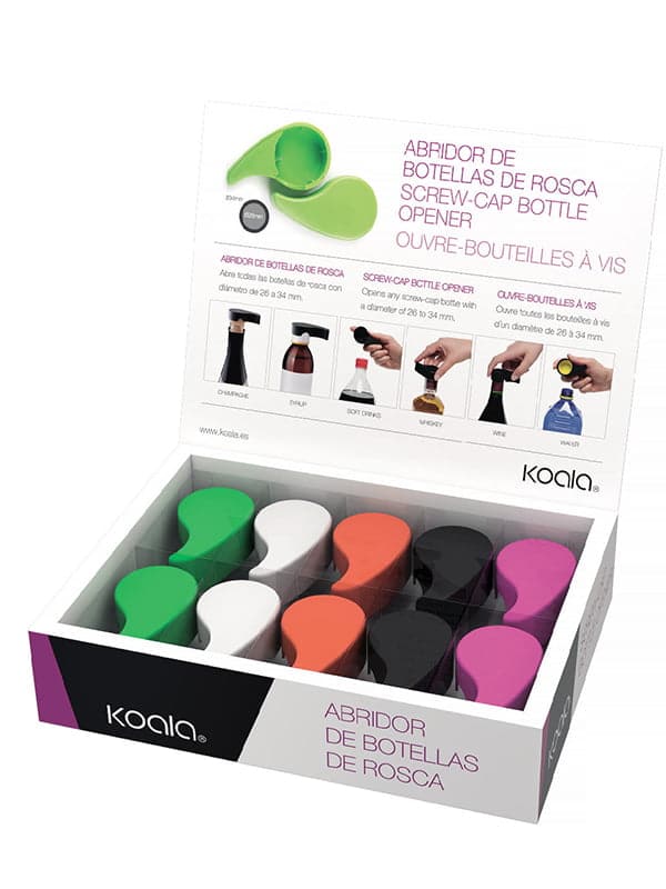 Ouvre-bouteilles TWISTER – 5 couleurs assorties (vert/blanc/orange/noir/rose)